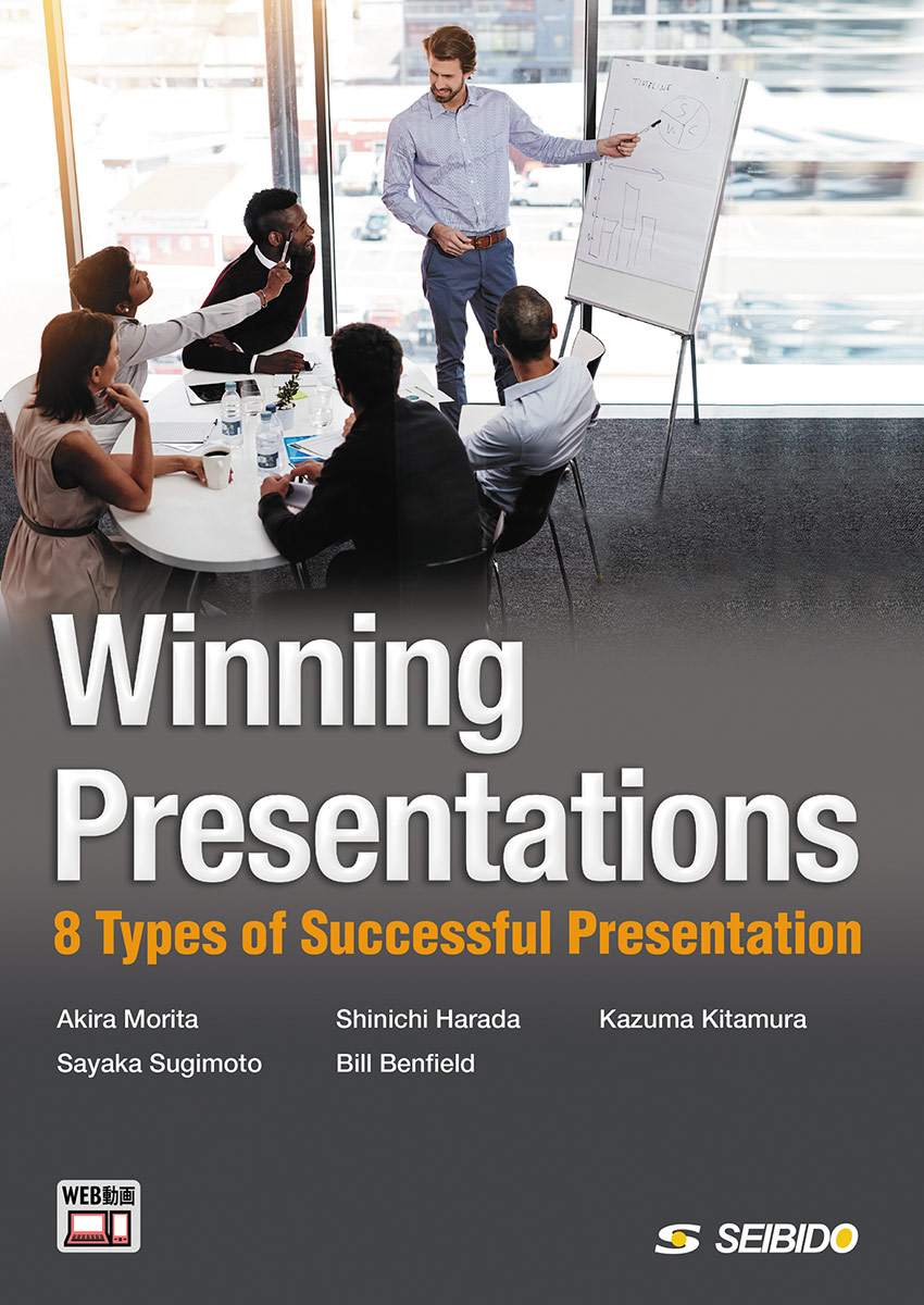 映像を通して基本となる8つのモデルプレゼンテーションの構造を学び、アカデミック、ビジネスの両分野で的確なプレゼンテーションが行える力を養成する。プレゼンテーションの構造をイメージ化し、プレゼンに必要な語彙や表現を身につける。テキストは、Part I: Basic Knowledge for Presentations、Part II: Informative Presentations、Part III: Persuasive Presentationsの3部構成。Part II、Part IIIでは、実社会で応用できるよう各モデルの「目的」と「応用例」も紹介する。